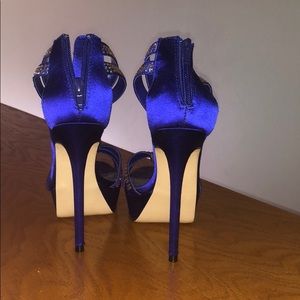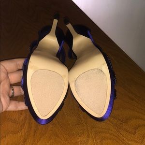 Size 7, never worn, excellent condition royal purple Steve Madden Heels with AB rhinestones. No dust bag or box. One tiny rhinestone is missing from top of left shoe- can replace.