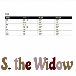 Available in sizes XS through 3X. Please see last photo for measurements.