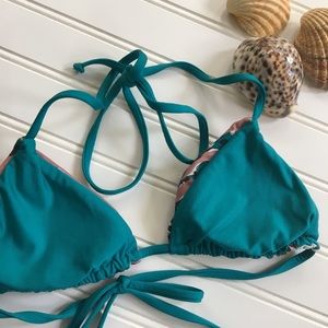 Splendid reversible swimsuit top triangle bra style SIZE XS, pink/teal pattern watercolor floral one side - other is solid teal, tie back and neck