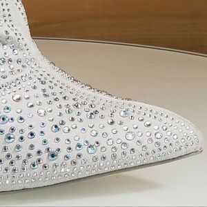 One chilly desert night, a cowboy and a showgirl rode off into the Vegas horizon, and the idea for this sparkly western boot was born. Features a pointed toe silhouette, slouchy shaft with countless sparkling rhinestones, and covered cone heel. Finished with a cushioned insole, soft lining, and pull-on construction.