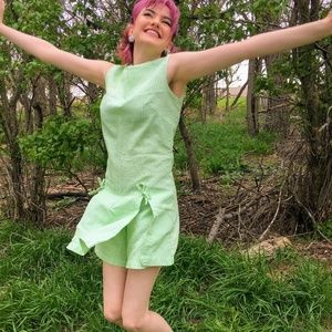Vintage Green Seer Sucker Romper Dress Sears