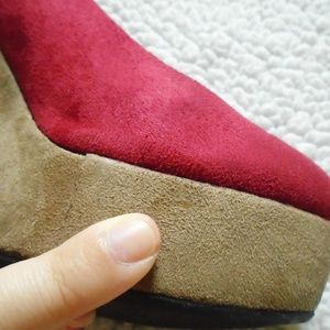 Overall good condition but a few imperfections. Right shoe has a small toe scuff, really only noticeable if you look from under (2nd pic). Left shoe has a mark that seems like the suede has worn off? (last pic) Again, not very noticeable. Both bottoms may be a little dirty and look like they may have had a pebble or something stuck in them.
