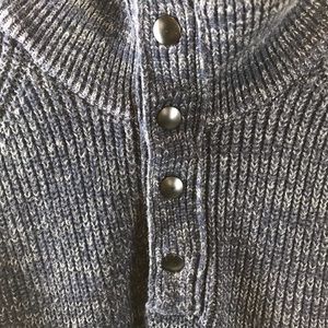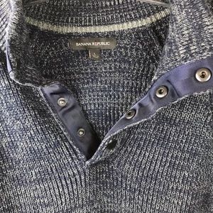 Banana Republic navy blue knit sweater. 4 snaps at collar. Can be worn open or snapped up. Great, pre-owned condition! Size large.