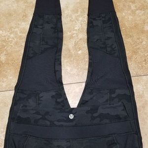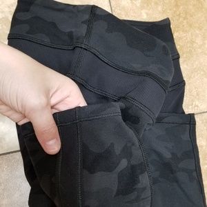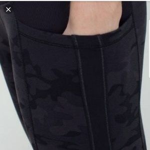 Ultra rare unicorn lululemon sun salutation leggings in black camo. Full-on luon material. Thicker. Full length. Size 6. No piling.