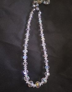 Are these pics the same necklace? The pic with the brown background looks like knots between beads where the one on the black background looks like smaller crystals. Which is it?