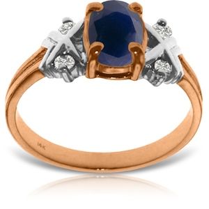 14K. SOLID GOLD RING WITH DIAMONDS & SAPPHIRE (Rose Gold)