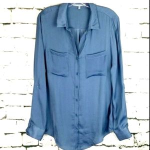Lemon Tart Satin Button Up Blouse Large