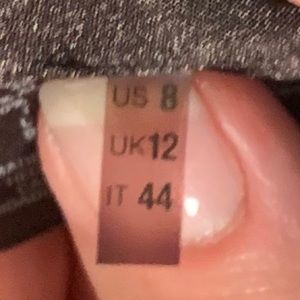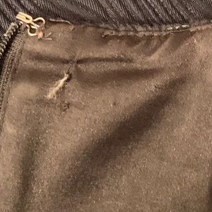Elie Tahari (Manufacturer label removed). Black base but with dark blue rib leaf or petal design, giving the dress a black look but with a blue tinge (almost imperceptible). Sleeveless and fully lined.