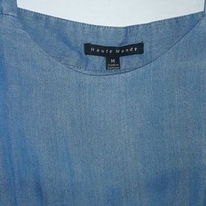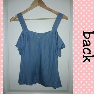 Super cute and comfortable chambray soft denim top with flowy shoulder detail.