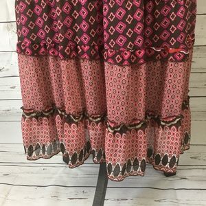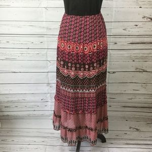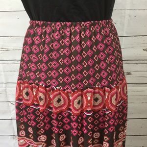 Notations Women's gypsy style multicolored (brown/pink/red/black/grey) maxi skirt. Elasticized waist. Fully lined. Size XL.