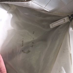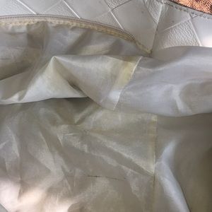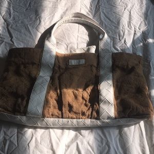 Gently used burlap beach bag. Does have light suntan loation stains on the inside (pictured above) but still in great condition.