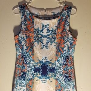 Scuba Fit And Flare Dress Orange White blue Taupe