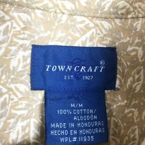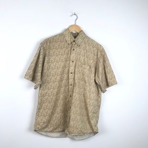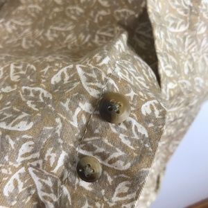 Tan Leaf Pattern Casual Button Down Date Shirt M