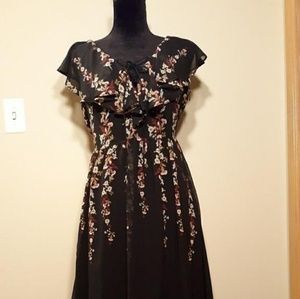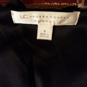 NWOT LC Lauren Conrad Limited Edition Runway Collection Hi Lo black floral print maxi dress. Sleeveless with chiffon like ruffle trim. Size 6. Measurements in photos show pit to pit, shoulder to highest hemline and shoulder to lowest hemline . No rips/stains/damage. Smoke free home.