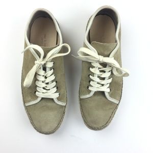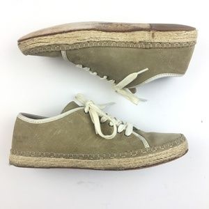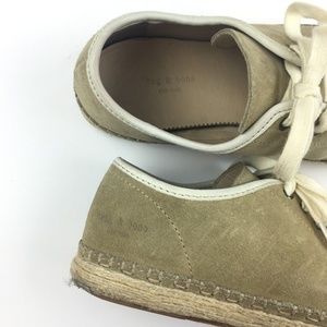 Rag & Bone "Baylor" espadrille lace up suede sneaker in stone color. These modern sneakers feature a braided jute sole. In used condition with visible signs of wear (see images). Size is women's EUR 37.5 / US 7.5.