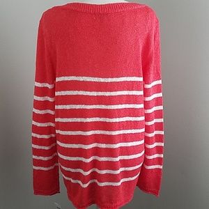 NWT! This is the perfect spring & summer sweater! Fashion Avenue Large Coral striped long-sleeve sweater. Loose knit so very cool and breathable. See pictures for details and measurements.