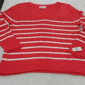 *NWT! Coral & White Lg Striped Long Sleeve sweater