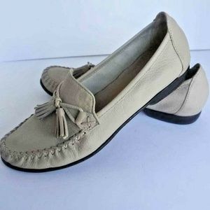 Cole Haan Leather Tassel Loafers Moc Toe Ivory Bei