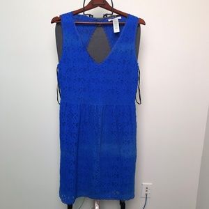 Royal Blue Lace Fit & Flare Sleeveless V-Neck Dress Size 8