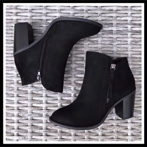 BLACK VEGAN SUEDE ANKLE BOOTIES HEELED BOOTS