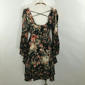 SOLD !People Rare Boho Floral Bell Sleeve Dress