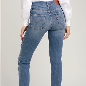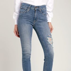 Levi's 724 Medium Wash Distressed High-Rise Straight Cropped Jeans