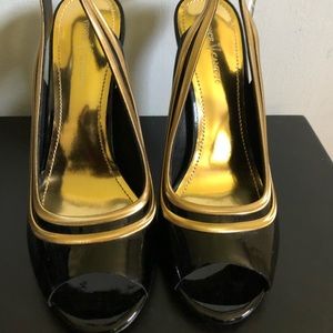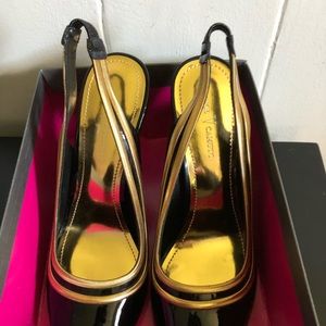 NWT Vince Camuto Black & Gold Slingbacks, Size 8.5