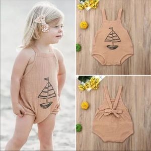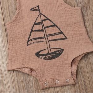 Brand New Muslin Sailboat Romper. Unisex for both Boy or Girl. Adjustable Straps and Bottom Snaps for easy diaper changes. Size 12-18 Months. No Brand. Fast Shipping. Bundle and Save!