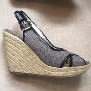 Cute baby trimmed with brown and cream plaid Espadrilles.