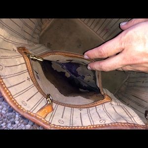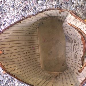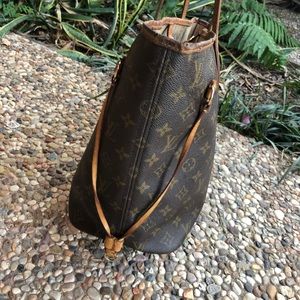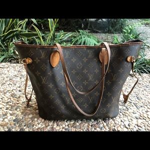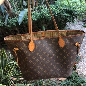 Louis Vuitton Neverfull MM. The MM size measures 12.6″ W x 11.4″ H x 6.7″ D. Made in the USA 47th week of ‘08. Selling because I don’t have a need for it anymore. Pen ink stain in zipper pocket.
