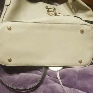 Stain would probably come out with a leather treatment, as well as its not that noticable either with the tassels that hang covering it.