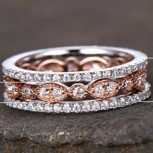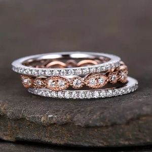 Rose Gold Silver 3 Ring Eternity wedding Bands