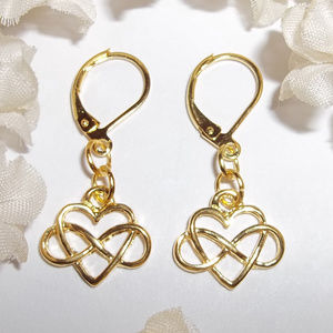 Gold Heart Earrings Infinity Symbol Sign Gift 3758