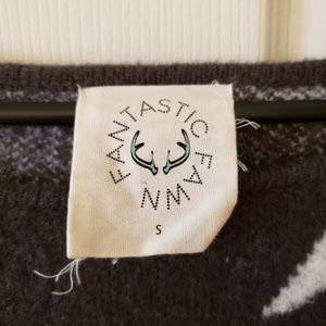Grey with white stars off the shoulder sweater. Super comfy and has cute detail at the scalloped bottom!
