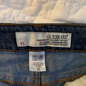 Dark blue denim mini skirt size 27, has some stretch. Summer bright colored floral sleeveless blouse .. ties around the next , size large,,, it fits me and I usually wear a small medium top.