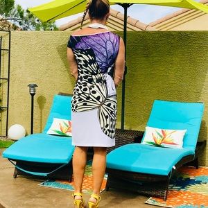 Butterfly π¦ Beauty Multicolor Roberto Cavaalli Mini . 88% Nylon 13% Elastane . Stunning Style ! Sparkling embellishment on front left sleeve. Asymmetrical Neckline. Light wear throughout. Very good Condition Bust 36 Waist 30 Length 35 lots of Stretch. Size 8