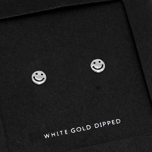 • 24 karats White gold dipped smile smiley face stud earrings.
