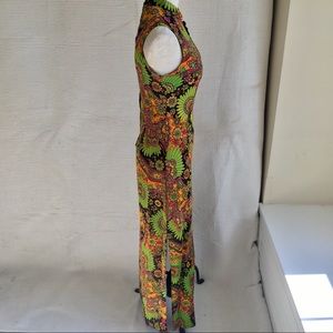 Vintage 60s 70s Paisley Print Neon Long Maxi Dress