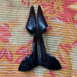 Charles David Black Leather Pointy Toe Cut Flats