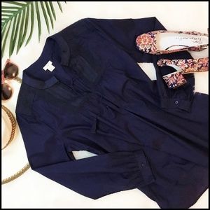 J. Crew Factory navy long sleeve Boho popover top. Sleeve length is 23.5" and has a button closure on cuff. Overall length from shoulder to hem is 26" and from pit to pit is 20". (Measurements are taken while laid flat.) 100% cotton. Size S