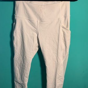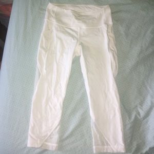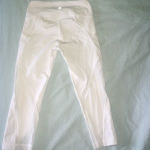 White double lined Lululemon cropped leggings. Mesh detail on calf. Pockets along legs. WORN ONCE!