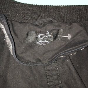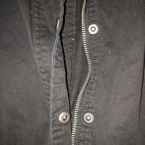 Black Varsity Jacket! Only flaw is that the tag ripped off. It has both a zipper and is button up. Perfect for an outfit with a solid color shirt & denim pants. It’s very cute & trendy. It doesn’t really keep you warm. Size small but it is a little big. Has a bit of lint but can be fixed with a lint roller. 🔥🔥🔥