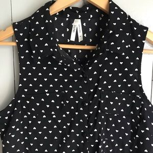 This Black and White Hearts Sleeveless collared Button down blouse is sweeeeeet.