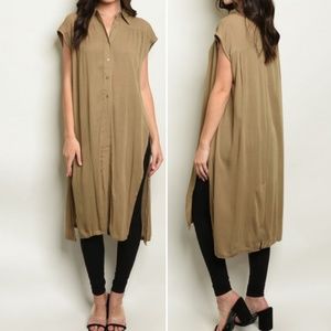 OVERSIZED OLIVE SIDE SLIT TUNIC TOP