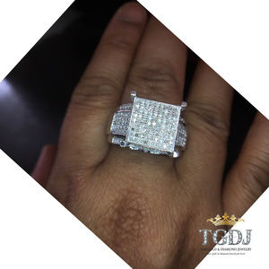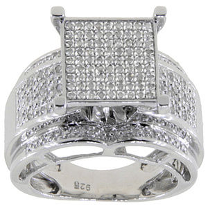 The chunky yet fashionable ring is crafted of sterling silver with a square setting that is paved with 1/3 carat of sparkling diamonds for a look of rich elegance. The ring is set off with a gleaming, high-polish finish.