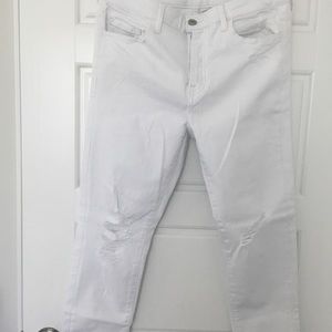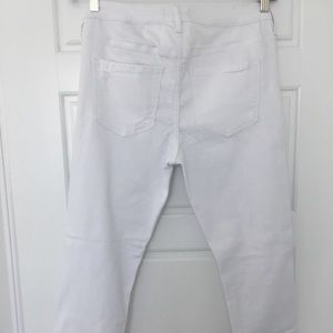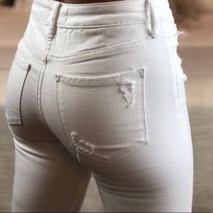 Very stretchy and has distressing. Mid rise, the tag and seller describe these as “ankle length” but I feel like they fit as regular length.