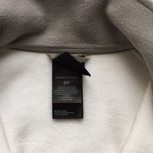 Gently used,women’s North Face jacket,size small. Soft fleece,2 pockets with toggle zips,two-tone light grey and Snow White.Armpit to armpit 19”, back of neck to hem 24.5”, shoulder to cuff 26.5”. Clean.