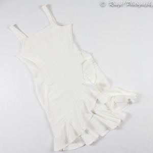 White Sheath Ruffle Detail Asymmetrical Dress