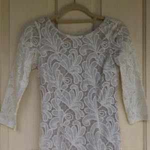 This dress is amazing and super nice! The front and back are lined with beige underneath and the sleeves continue with the lacy material. It’s in great condition!!!