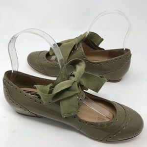 Pour La Victoire Avocado Green Retro Lace Mary Janes Shoes Size 6